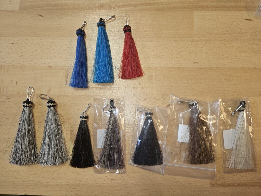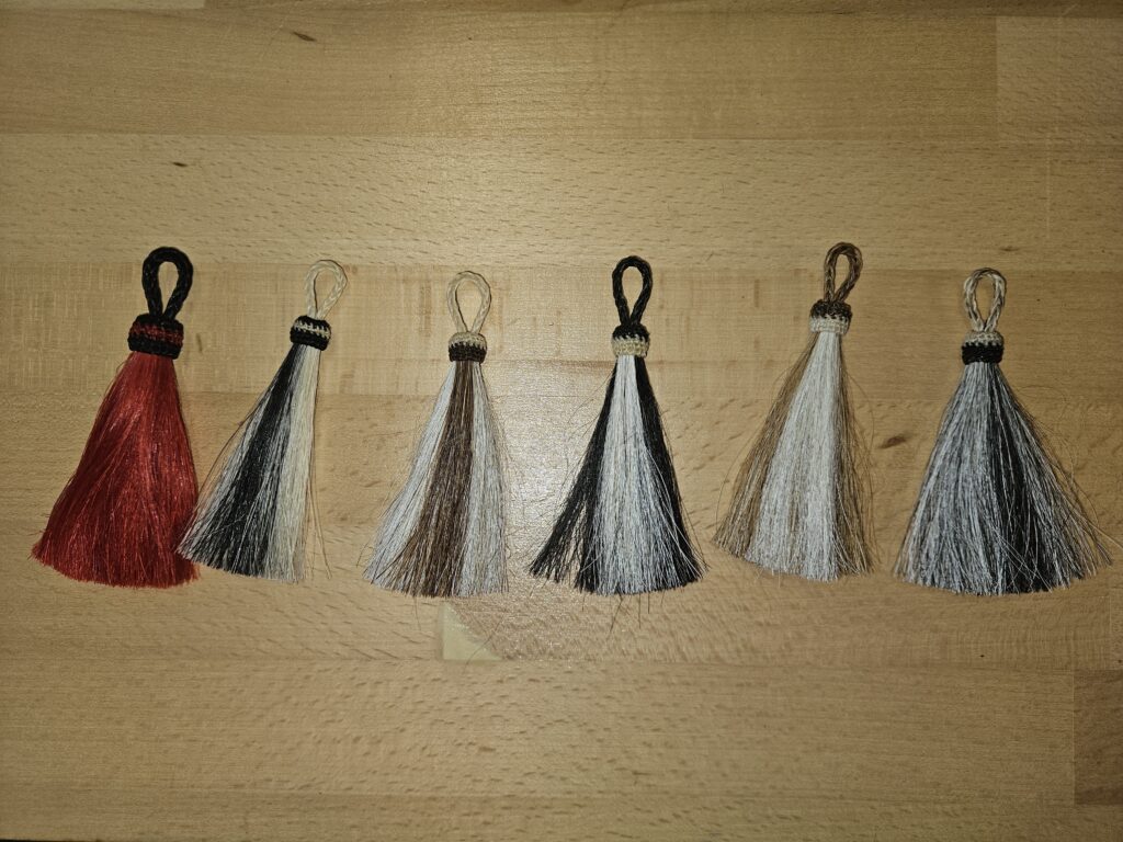 Il est possible d’ajouter un «shu flie», ou «chasse mouche» sous la sangle, en voici quelques-uns: