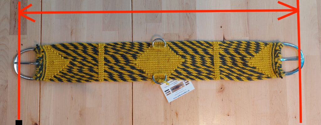 La sangle est fabriquée en tension pour arriver à une certaine longueur, elle sera donc à la taille indiquée une fois sanglée sur le cheval. Il est possible, en la mesurant à plat sans tension, d’arriver à une longueur plus courte.